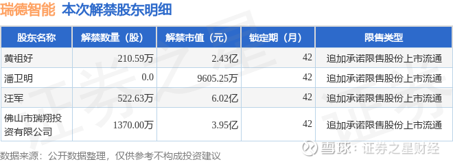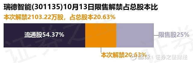 证券之星消息,根据市场公开信息整理,瑞德智能(301135)于10月13日将有2103.22万股限售股份解禁,为公司追加承诺限售股份上市流通,占公司总股本20.63%。(本次数据根据历史公告整理得出,实际情况以上市公司最新公告为准)最近一年内,该股累计解禁613.2万股,占总股本的6.01%。本次解禁后,公司还有2549.12万股限售股份,占总股本25.0%。具体如下图所示: