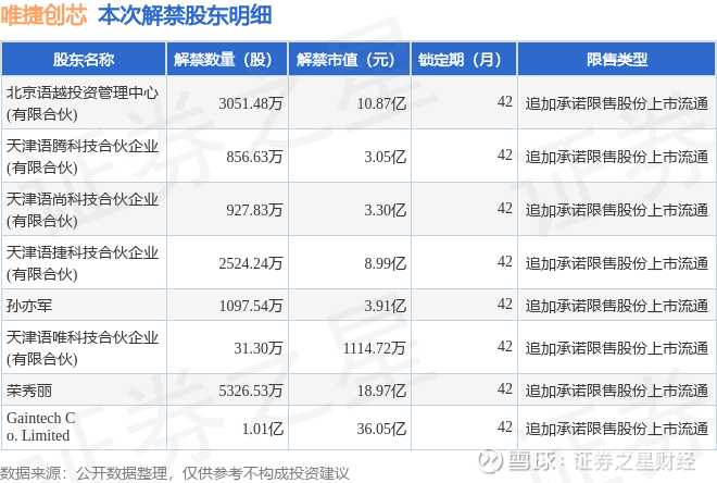 本次解禁涉及股东明细见下表: