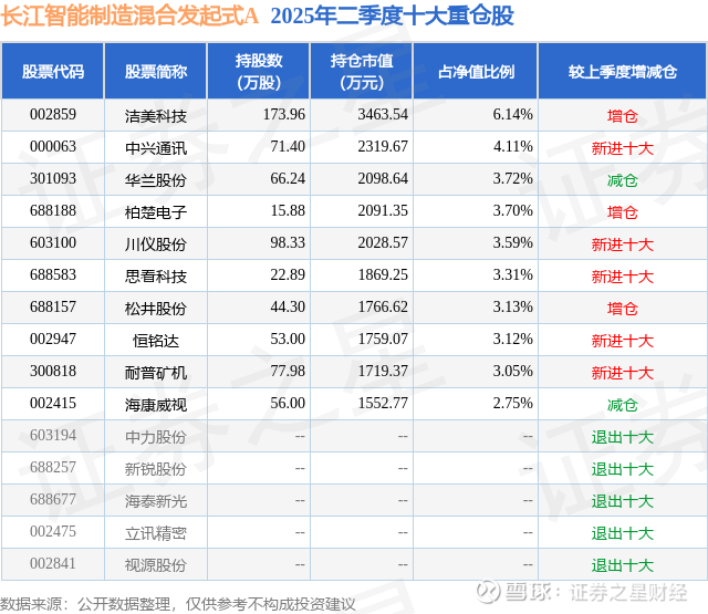 根据2025基金半年报公募基金重仓股数据,重仓该股的公募基金共4家,其中持有数量最多的公募基金为长江证券(上海)资管的长江智能制造混合发起式A。长江智能制造混合发起式A目前规模为3.57亿元,最新净值1.415(10月13日),较上一交易日下跌0.61%,近一年上涨38.74%。该公募基金现任基金经理为施展。施展在任的基金产品包括:长江旭日混合A,管理时间为2024年7月24日至今,期间收益率为44.57%。