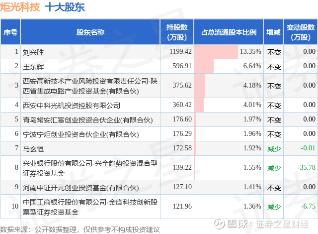 根据炬光科技2025年中报公布的十大股东详情如下:
