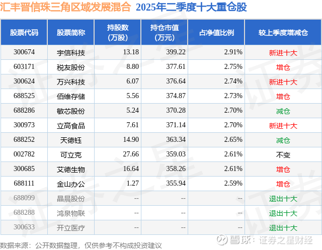 根据2025基金半年报公募基金重仓股数据,重仓该股的公募基金共4家,其中持有数量最多的公募基金为汇丰晋信基金的汇丰晋信珠三角区域发展混合。汇丰晋信珠三角区域发展混合目前规模为1.37亿元,最新净值2.6484(10月14日),较上一交易日下跌3.35%,近一年上涨47.36%。该公募基金现任基金经理为吴培文。吴培文在任的基金产品包括:汇丰晋信价值先锋股票A,管理时间为2019年5月18日至今,期间收益率为143.84%;汇丰晋信策略优选混合A,管理时间为2022年9月14日至今,期间收益率为49.8%;汇丰晋信龙头优势混合A,管理时间为2022年9月27日至今,期间收益率为6.89%。