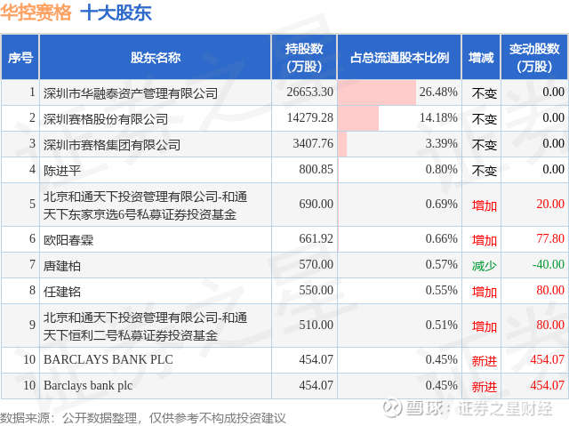根据华控赛格2025年中报公布的十大股东详情如下: