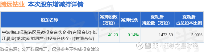 证券之星消息,10月17日腾远钴业发布公告《腾远钴业:关于持股5%以上股东股份减持至5%暨权益变动的提示性公告》,其股东宁波梅山保税港区晨道投资合伙企业(有限合伙)-长江晨道(湖北)新能源产业投资合伙企业(有限合伙)于2025年10月16日合计减持40.2万股,占公司目前总股本的0.1364%,变动期间该股股价下跌2.78%,截止10月16日收盘报68.15元。