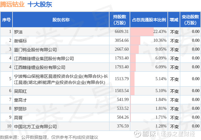 根据腾远钴业2025年中报公布的十大股东详情如下: