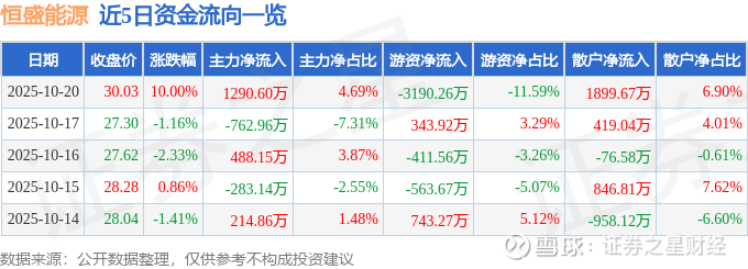 证券之星消息,恒盛能源10月20日涨停收盘,收盘价30.03元。该股于11点21分涨停,未打开涨停,截止收盘封单资金为1.15亿元,占其流通市值1.36%。