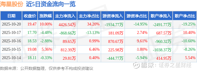 10月20日的资金流向数据方面,主力资金净流入4426.54万元,占总成交额34.2%,游资资金净流出1934.77万元,占总成交额14.95%,散户资金净流出2491.77万元,占总成交额19.25%。