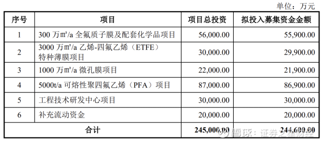 招股说明书显示,未来材料本次拟募资24.46亿元,其中19.46亿元将用于产能扩张,占募集资金的比例近八成,投向5000t/a可熔性聚四氟乙烯(PFA)项目、1000万㎡/a微孔膜项目等。