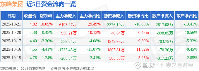证券之星消息,东峰集团10月21日涨停收盘,收盘价4.82元。该股于9点54分涨停,未打开涨停,截止收盘封单资金为5868.24万元,占其流通市值0.65%。