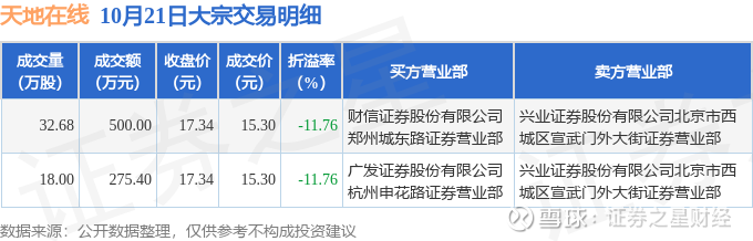证券之星消息,10月21日天地在线发生大宗交易,交易数据如下:
