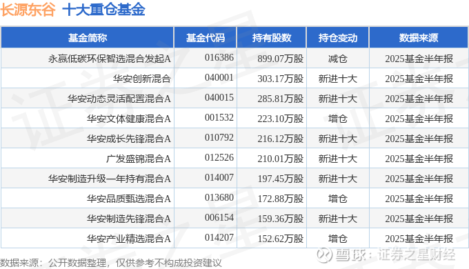 持有长源东谷最多的基金为永赢低碳环保智选混合发起A,目前规模为1.77亿元,最新净值0.8892(10月21日),较上一交易日上涨1.76%,近一年上涨12.46%。该基金现任基金经理为胡泽。
