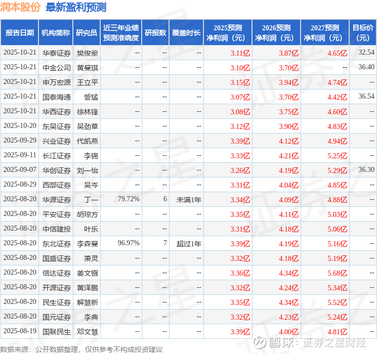 最新盈利预测明细如下: