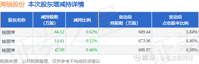 证券之星消息,10月22日海锅股份发布公告《海锅股份:关于持股5%以上股东减持股份的预披露公告》,其股东钱丽萍于2025年8月7日至2025年10月21日间合计减持125.52万股,占公司目前总股本的1.2027%,变动期间该股股价下跌4.95%,截止10月21日收盘报27.66元。