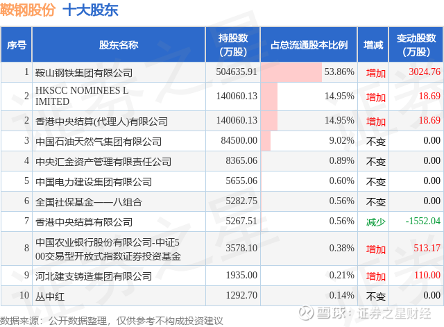 根据鞍钢股份2025年中报公布的十大股东详情如下: