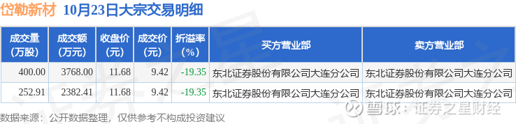 证券之星消息,10月23日岱勒新材发生大宗交易,交易数据如下: