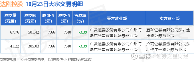 证券之星消息,10月23日达刚控股发生大宗交易,交易数据如下: