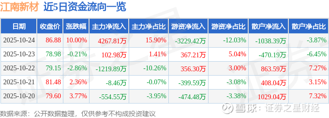 近5日资金流向一览见下表: