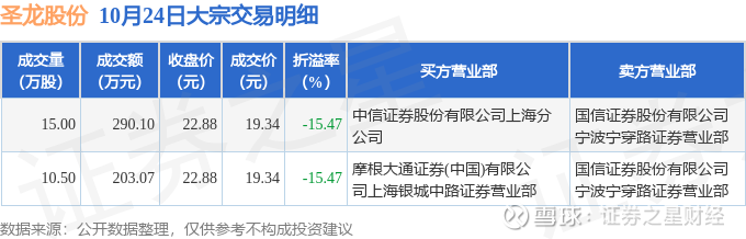 证券之星消息,10月24日圣龙股份发生大宗交易,交易数据如下: