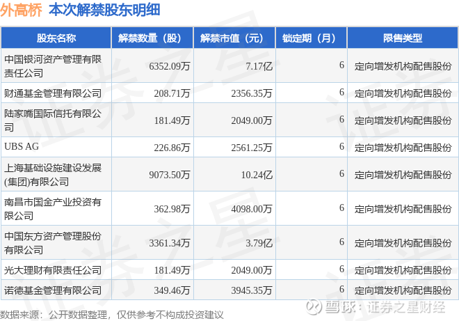 证券之星消息,根据市场公开信息整理,外高桥(600648)于10月27日将有2.03亿股限售股份解禁,为公司定向增发机构配售股份,占公司总股本14.93%。(本次数据根据历史公告整理得出,实际情况以上市公司最新公告为准)本次解禁后,公司还有2158.4万股限售股份,占总股本1.59%。具体如下图所示: