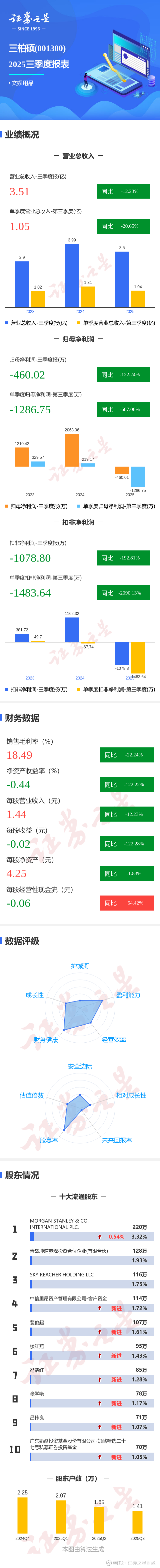 证券之星消息,三柏硕2025年三季报显示,公司主营收入3.51亿元,同比下降12.23%;归母净利润-460.02万元,同比下降122.24%;扣非净利润-1078.8万元,同比下降192.81%;其中2025年第三季度,公司单季度主营收入1.05亿元,同比下降20.66%;单季度归母净利润-1286.75万元,同比下降687.09%;单季度扣非净利润-1483.64万元,同比下降2090.14%;负债率18.12%,投资收益839.73万元,财务费用99.73万元,毛利率18.49%。