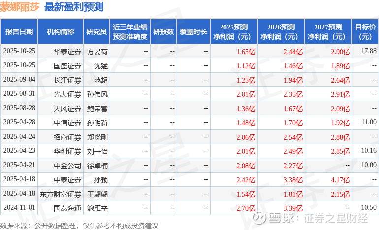 以下是详细的盈利预测信息: