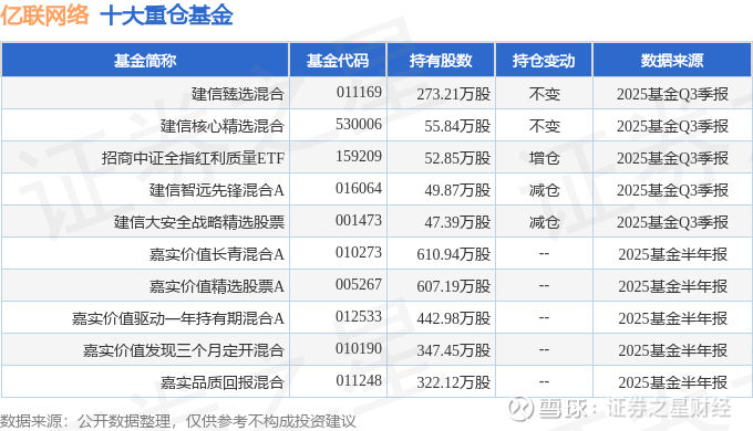 持有亿联网络最多的基金为建信臻选混合,目前规模为20.81亿元,最新净值0.8855(10月27日),较上一交易日上涨1.21%,近一年上涨1.5%。该基金现任基金经理为王东杰。