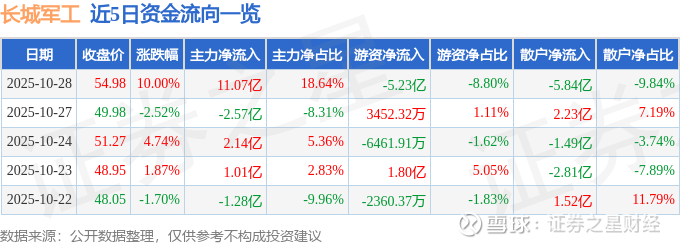 证券之星消息,长城军工10月28日涨停收盘,收盘价54.98元。该股于13点20分涨停,2次打开涨停,截止收盘封单资金为2.11亿元,占其流通市值0.53%。
