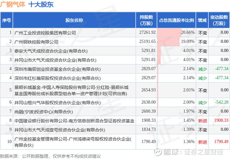根据广钢气体2025年中报公布的十大股东详情如下: