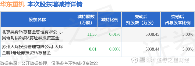 证券之星消息,10月28日华东重机发布公告《华东重机:简式权益变动报告书(北京昊青私募基金管理有限公司)》,其股东北京昊青私募基金管理有限公司-昊青明裕6号私募证券投资基金、苏州天琛投资管理有限公司-天琛金艇1号证券投资私募基金于2025年10月27日合计减持11.56万股,占公司目前总股本的0.0115%,变动期间该股股价下跌1.32%,截止10月27日收盘报7.5元。