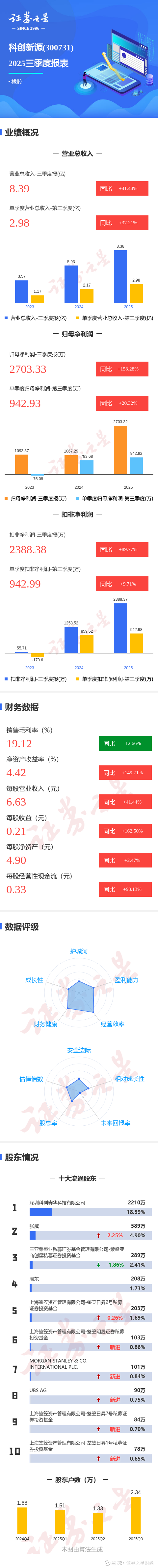 图解科创新源三季报:第三季度单季净利润同比增长20.32%