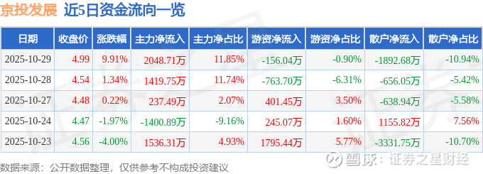 近5日资金流向一览见下表: