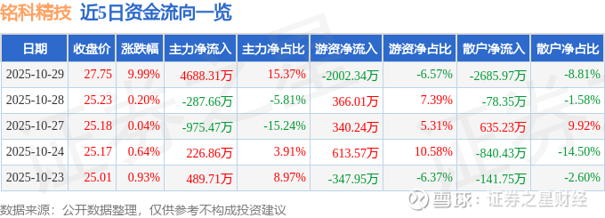 10月29日的资金流向数据方面,主力资金净流入4688.31万元,占总成交额15.37%,游资资金净流出2002.34万元,占总成交额6.57%,散户资金净流出2685.97万元,占总成交额8.81%。