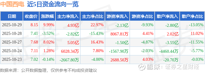证券之星消息,中国西电10月29日涨停收盘,收盘价8.15元。该股于10点28分涨停,未打开涨停,截止收盘封单资金为1.35亿元,占其流通市值0.32%。