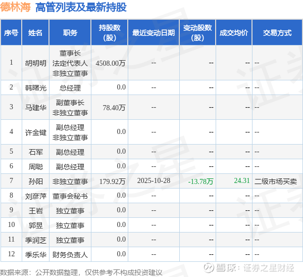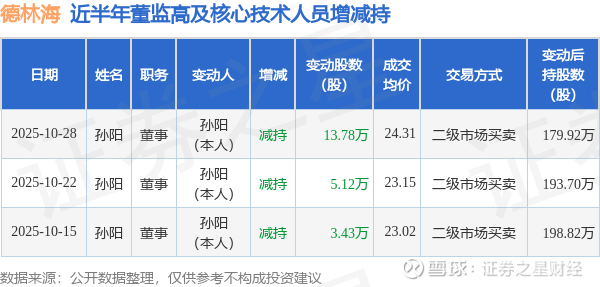 德林海近半年内的董监高及核心技术人员增减持详情如下: