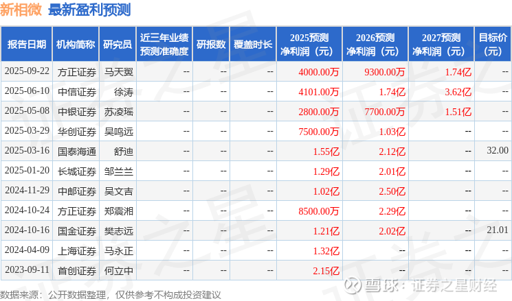 以下是详细的盈利预测信息: