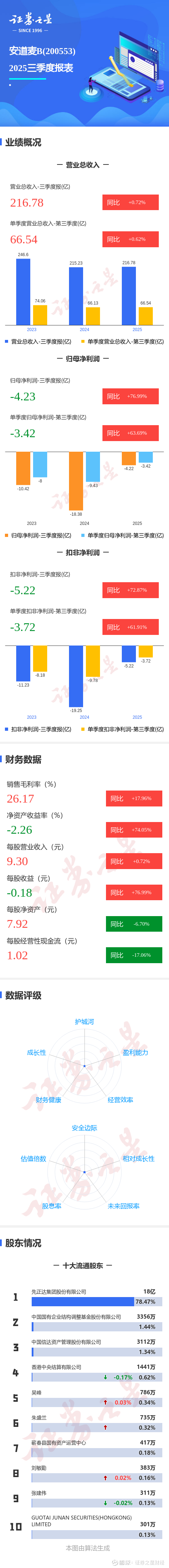 证券之星消息,安道麦B2025年三季报显示,前三季度公司主营收入216.78亿元,同比上升0.72%;归母净利润-4.23亿元,同比上升77.0%;扣非净利润-5.22亿元,同比上升72.87%;其中2025年第三季度,公司单季度主营收入66.54亿元,同比上升0.62%;单季度归母净利润-3.42亿元,同比上升63.69%;单季度扣非净利润-3.72亿元,同比上升61.92%;负债率63.04%,投资收益746.4万元,财务费用15.44亿元,毛利率26.17%。