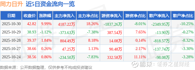 10月30日的资金流向数据方面,主力资金净流入4187.22万元,占总成交额18.26%,游资资金净流出1837.26万元,占总成交额8.01%,散户资金净流出2349.95万元,占总成交额10.25%。