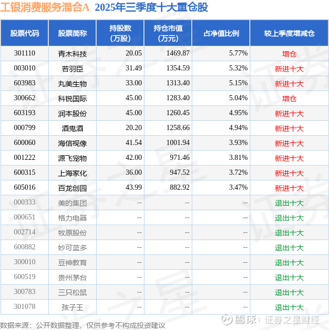 工银消费服务混合A的前十大重仓股如下:
