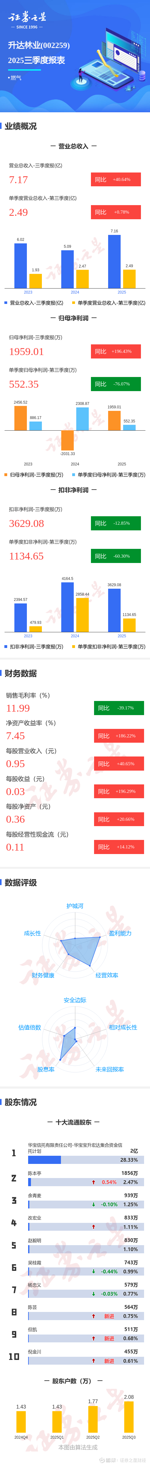 证券之星消息,升达林业2025年三季报显示,前三季度公司主营收入7.17亿元,同比上升40.65%;归母净利润1959.01万元,同比上升196.44%;扣非净利润3629.08万元,同比下降12.86%;其中2025年第三季度,公司单季度主营收入2.49亿元,同比上升0.78%;单季度归母净利润552.35万元,同比下降76.08%;单季度扣非净利润1134.65万元,同比下降60.31%;负债率69.91%,财务费用740.97万元,毛利率11.99%。