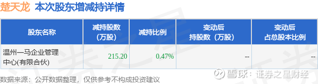 证券之星消息,10月30日楚天龙发布公告《楚天龙:关于股东减持股份触及1%整数倍的公告》,其股东温州一马企业管理中心(有限合伙)于2025年10月14日至2025年10月29日间合计减持215.2万股,占公司目前总股本的0.4667%,变动期间该股股价上涨6.85%,截止10月29日收盘报21.69元。