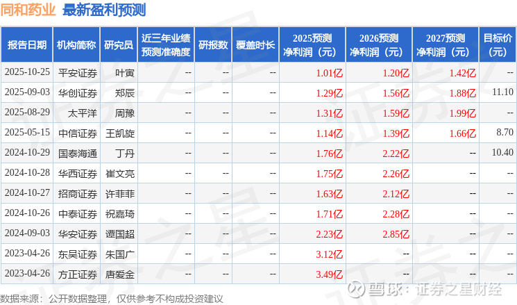 以下是详细的盈利预测信息: