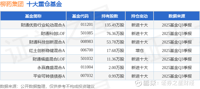 持有柳药集团最多的基金为财通优势行业轮动混合A,目前规模为5.63亿元,最新净值0.7276(10月30日),较上一交易日下跌1.58%,近一年上涨13.95%。该基金现任基金经理为张胤。
