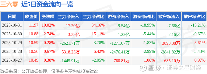 10月31日的资金流向数据方面,主力资金净流入17.2亿元,占总成交额34.16%,游资资金净流出9.54亿元,占总成交额18.95%,散户资金净流出7.66亿元,占总成交额15.21%。