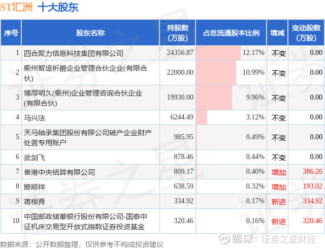 根据ST汇洲2025年三季报公布的十大股东详情如下: