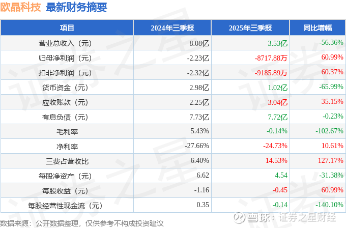 据证券之星公开数据整理,近期欧晶科技(001269)发布2025年三季报。截至本报告期末,公司营业总收入3.53亿元,同比下降56.36%,归母净利润-8717.88万元,同比上升60.99%。按单季度数据看,第三季度营业总收入1.14亿元,同比下降49.1%,第三季度归母净利润-1298.0万元,同比上升86.72%。本报告期欧晶科技三费占比上升明显,财务费用、销售费用和管理费用总和占总营收同比增幅达127.17%。