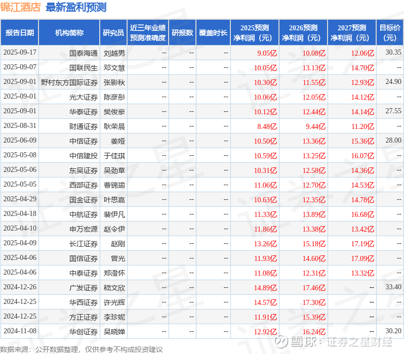 最新盈利预测明细如下: