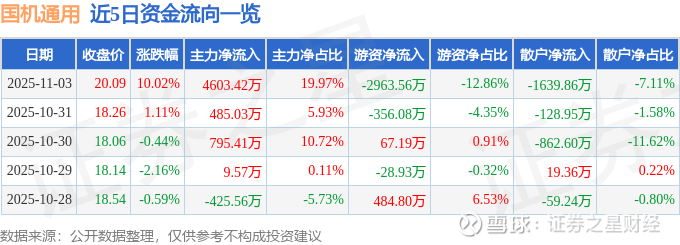 证券之星消息,国机通用11月3日涨停收盘,收盘价20.09元。该股于9点30分涨停,1次打开涨停,截止收盘封单资金为4934.29万元,占其流通市值1.68%。