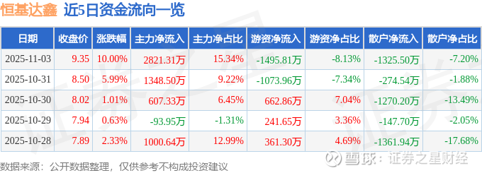 11月3日的资金流向数据方面,主力资金净流入2821.31万元,占总成交额15.34%,游资资金净流出1495.81万元,占总成交额8.13%,散户资金净流出1325.5万元,占总成交额7.2%。