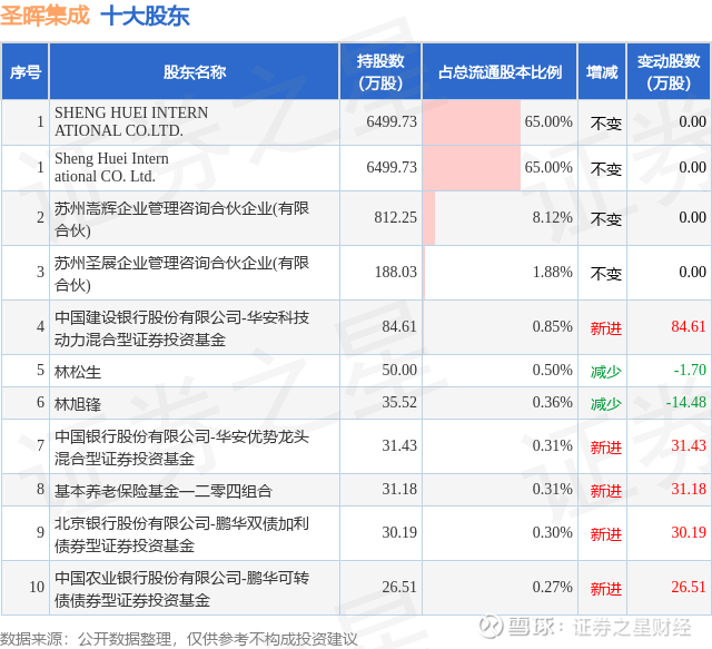 根据圣晖集成2025年三季报公布的十大股东详情如下: