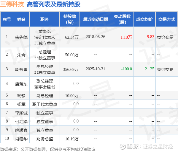 三德科技近半年内的董监高及核心技术人员增减持详情如下: