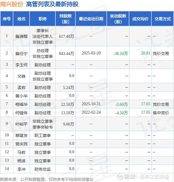 南兴股份近半年内的董监高及核心技术人员增减持详情如下: